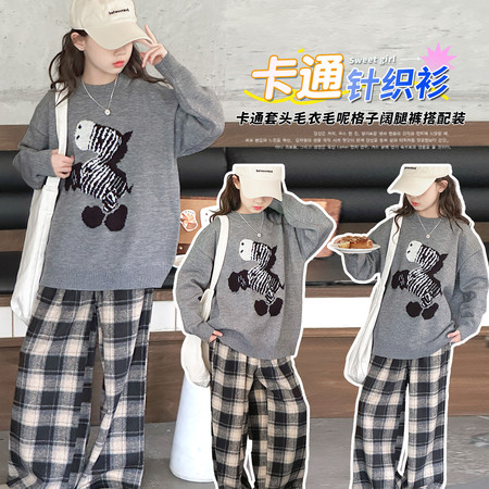 乐橙&LC2592可爱腊肠狗毛衣格子裤套装