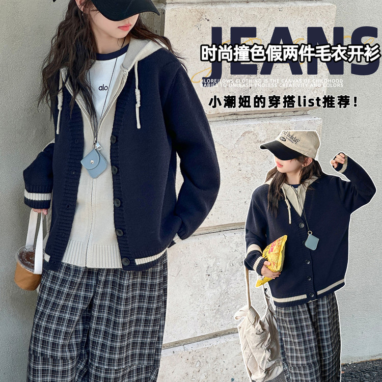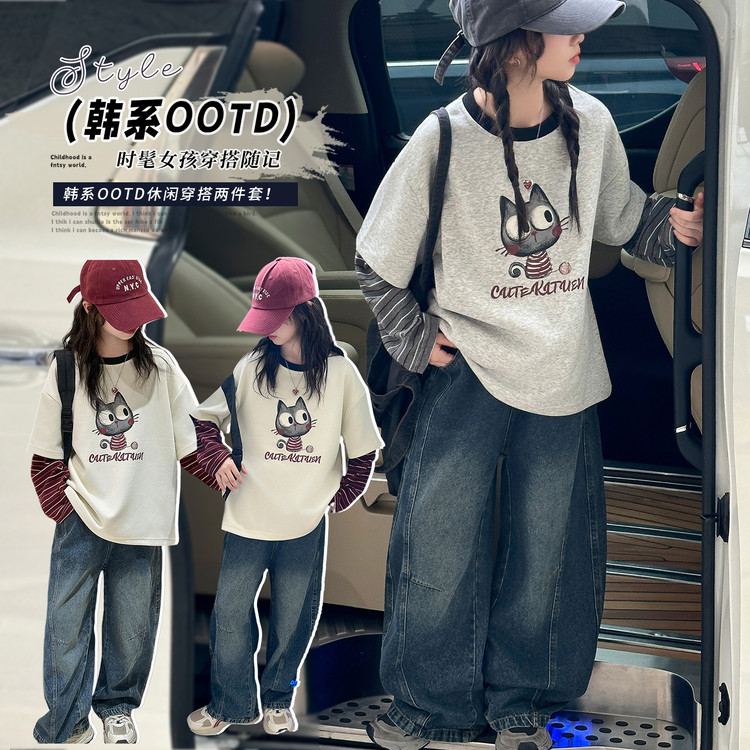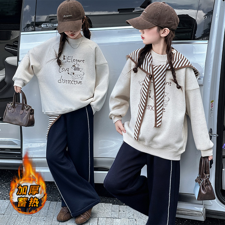 星辰童梦&XCTM2518披肩加绒卫衣仿牛仔裤套装