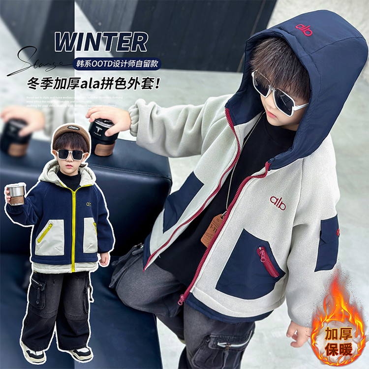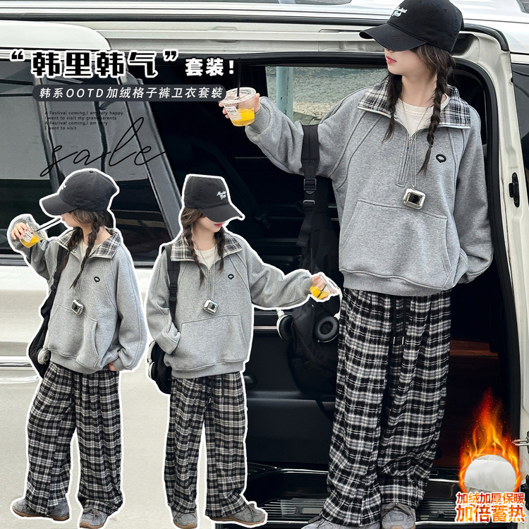 爱玖童装&A3-45款格子拼接加绒卫衣套装
