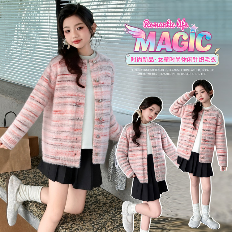 丫豆童装&小熊挂件毛毛衣三件套