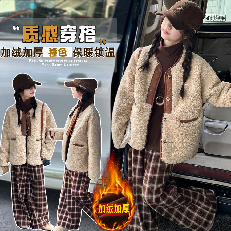 南瓜街&723款撞色毛绒外套套装