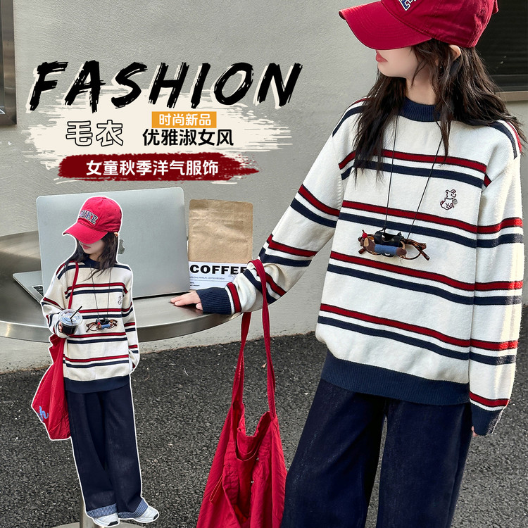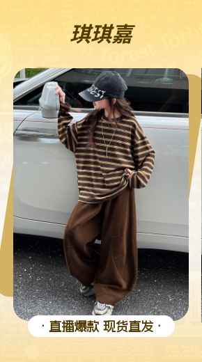 南瓜街&720款条纹加绒加厚卫衣套装