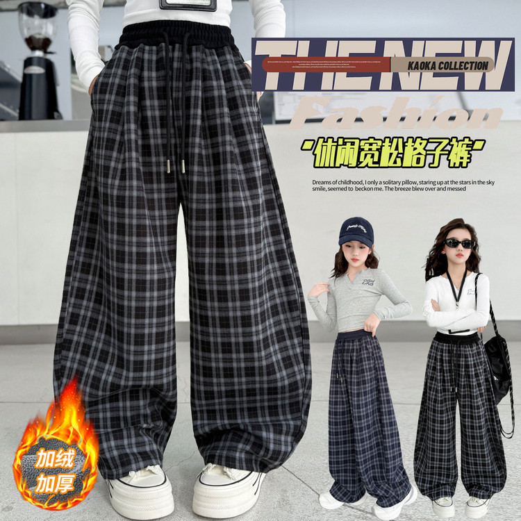 豆贝豆&哈哈加绒格子裤