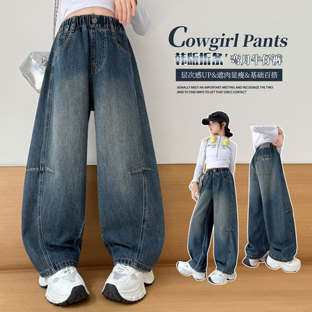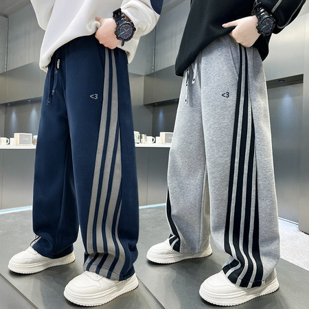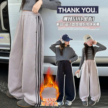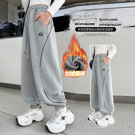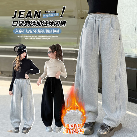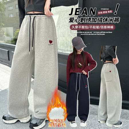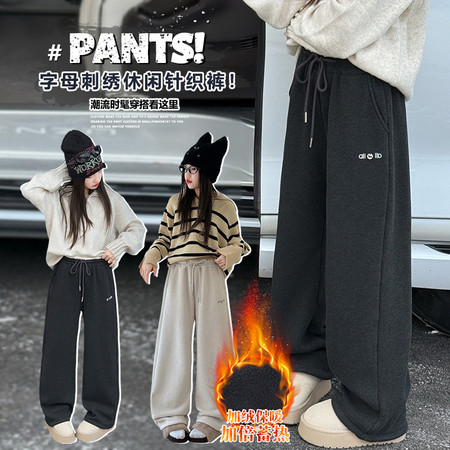 睿豆豆&25259糯米绒字母刺绣阔腿裤