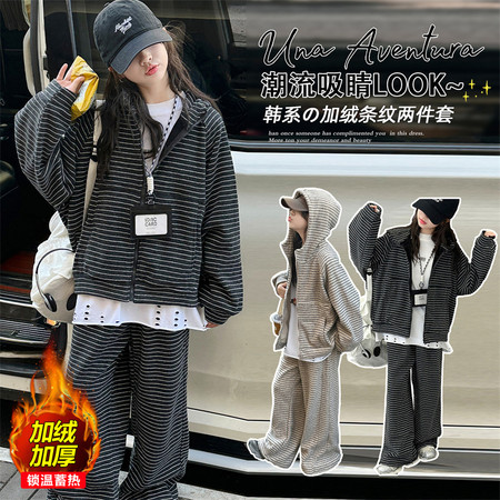 韩嘟服饰&黑色条纹卫衣套装