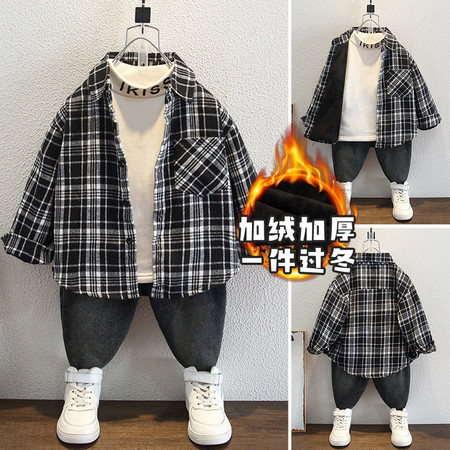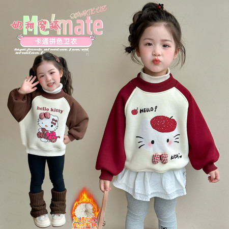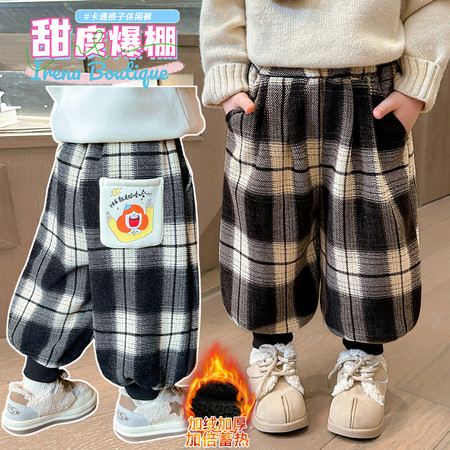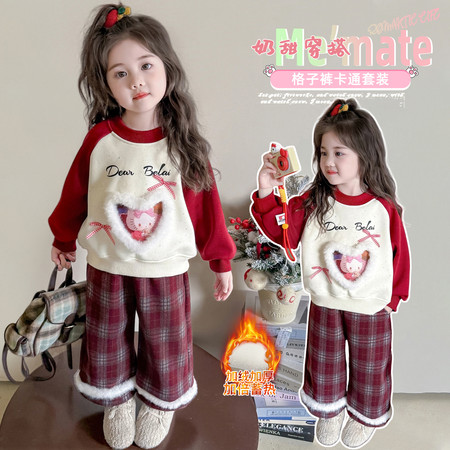 小妖乖&红色格子裤卡通加绒套装