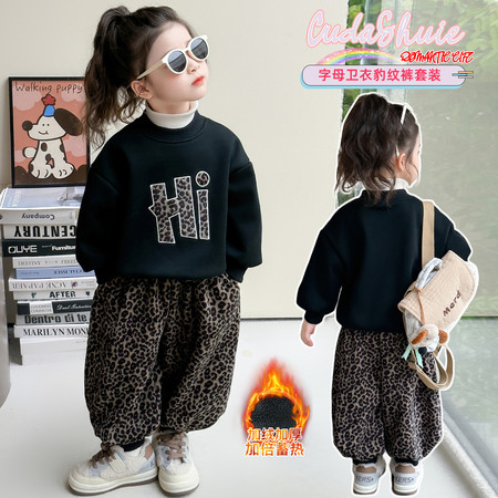 小妖乖&字母卫衣豹纹裤加绒套装