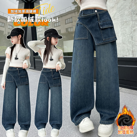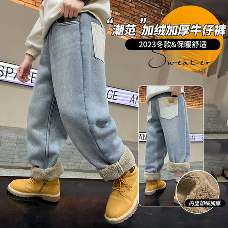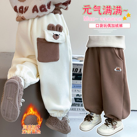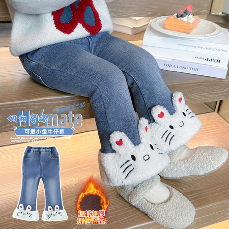 蕊蕊&R106款小熊毛巾绣加绒牛仔裤