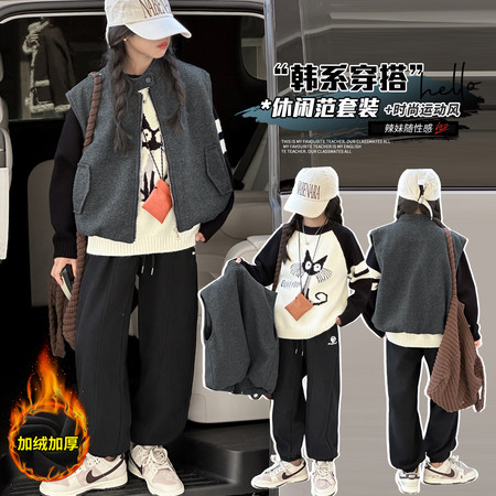 亿棵树童装&Q1273款航线夹棉小马甲三件套
