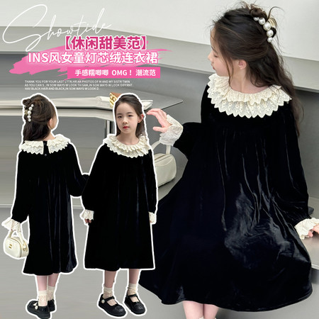 俏巴兔&112灯芯绒蕾丝连衣裙
