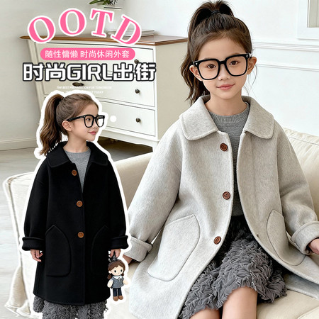 创未服饰&女童长款呢子大衣