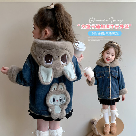 甜甜家&卡通加绒牛仔连帽外套-2707