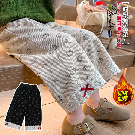 豆贝豆&圆点花边加绒裤